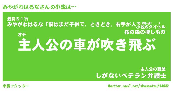 | 男性向けラノベタイトル風あだ名 | 『みやがわはるなの憂鬱』 |