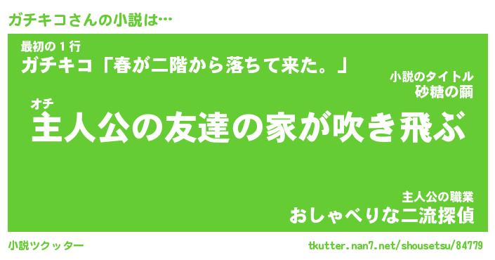 | 2回繰り返すあだ名 | 『ガチガチ』『ガガチチ』『うろうろ』 |
