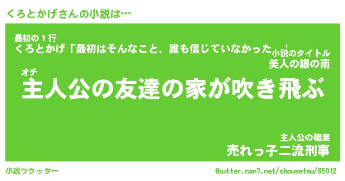 | 魚たちの銀の雨WW …「ケモノ」 | 10月27日 05:47 |