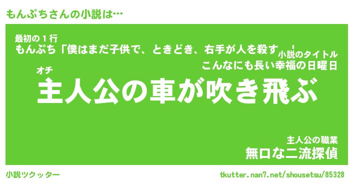 | 男性向けラノベタイトル風あだ名 | 『もんぷちの憂鬱』 |