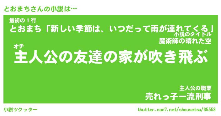 | 男性向けラノベタイトル風あだ名 | 『とおまちの憂鬱』 |