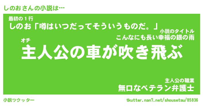| 魚たちの銀の雨WW …「ケモノ」 | 10月27日 05:47 |