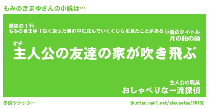 | 男性向けラノベタイトル風あだ名 | 『もみのきまゆの憂鬱』 |