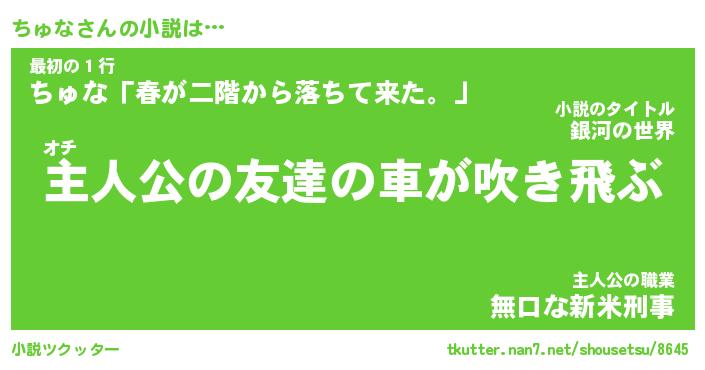 | 胡散臭い通販商品みたいなあだ名 | 『億万長者になれるブレスレット…その名も「ちゅな」』 |
