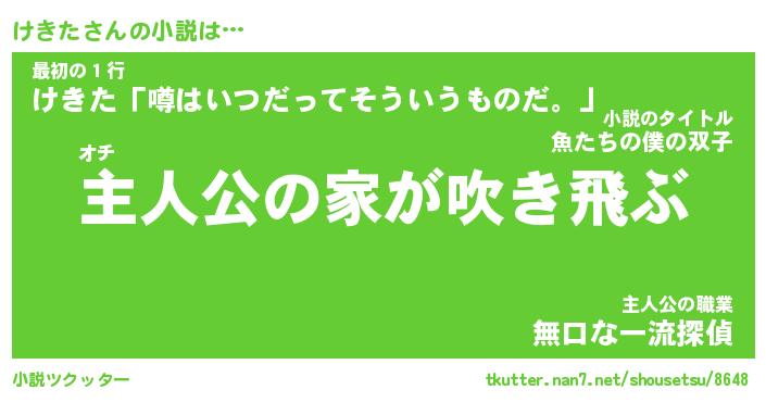 | 男性向けラノベタイトル風あだ名 | 『けきたの憂鬱』 |