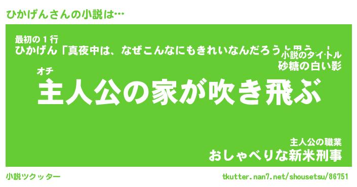 | 男性向けラノベタイトル風あだ名 | 『ひかげんの憂鬱』 |