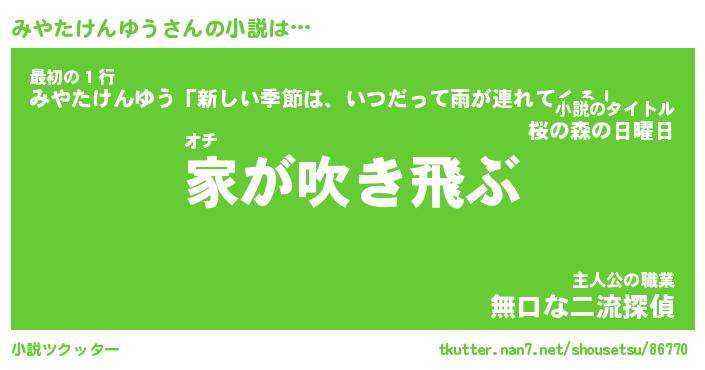| 男性向けラノベタイトル風あだ名 | 『みやたけんゆうの憂鬱』 |