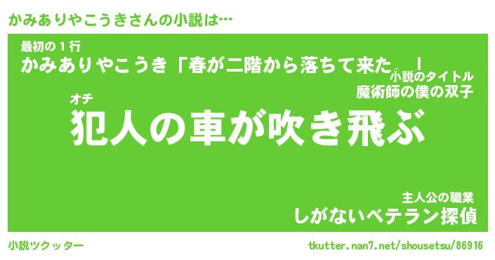 | ツイッター | かみありやこうきさんのツイッターID『fukuyoka_star』 |