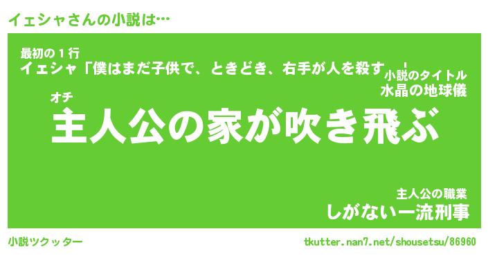 | 男性向けラノベタイトル風あだ名 | 『イェシャの憂鬱』 |