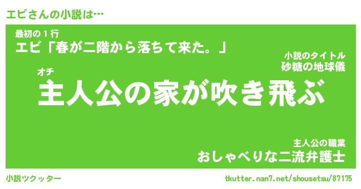 | 男性向けラノベタイトル風あだ名 | 『エビの憂鬱』 |