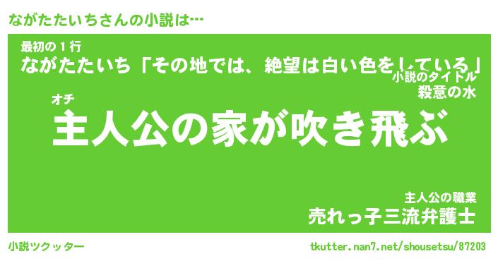 | 男性向けラノベタイトル風あだ名 | 『ながたたいちの憂鬱』 |
