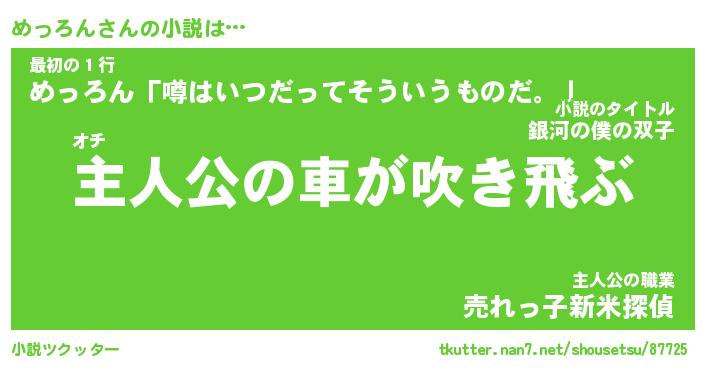 | 男性向けラノベタイトル風あだ名 | 『めっろんの憂鬱』 |