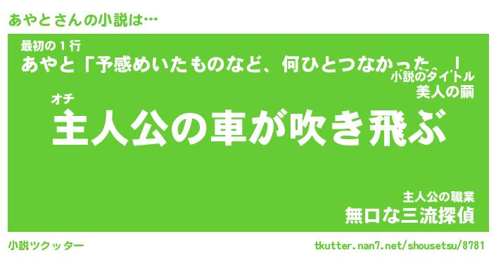 | 男性向けラノベタイトル風あだ名 | 『あやとの憂鬱』 |