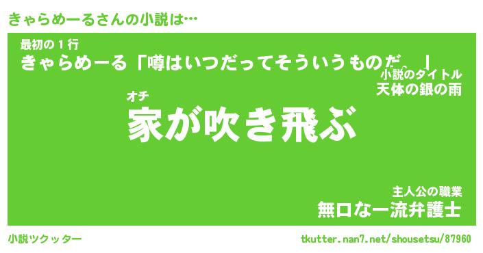 | 魚たちの銀の雨WW …「ケモノ」 | 10月27日 05:47 |