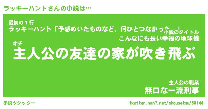 | 男性向けラノベタイトル風あだ名 | 『ラッキーハントの憂鬱』 |