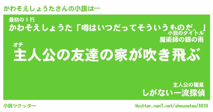 | 胡散臭い通販商品みたいなあだ名 | 『モテモテ間違いなし霊験あらたかなお札…その名も「かわそえしょうた」』 |