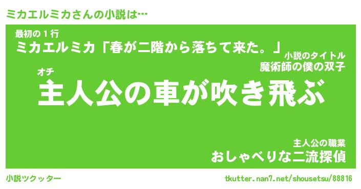 | 胡散臭い通販商品みたいなあだ名 | 『必ず成功するブレスレット…その名も「ミカエルミカ」』 |