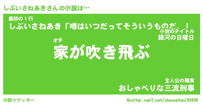 | 胡散臭い通販商品みたいなあだ名 | 『必ず成功する水晶球…その名も「しぶいさねあき」』 |