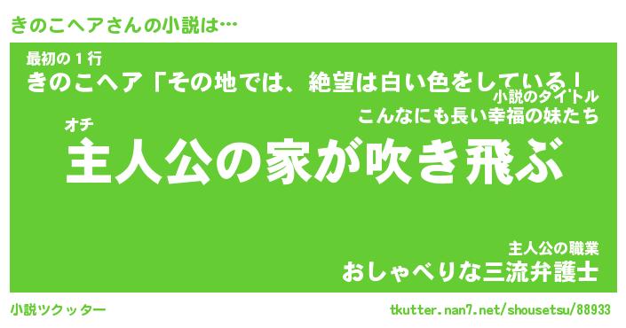 | 男性向けラノベタイトル風あだ名 | 『きのこヘアの憂鬱』 |
