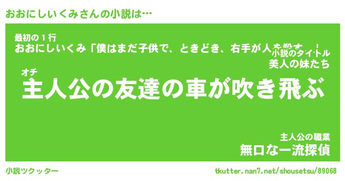 | 男性向けラノベタイトル風あだ名 | 『オオニシイクミアートオンライン』 |