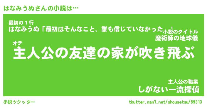| 男性向けラノベタイトル風あだ名 | 『はなみうぬの憂鬱』 |
