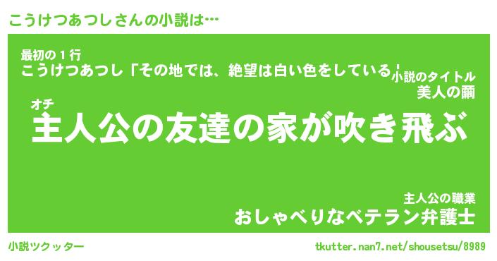 | 男性向けラノベタイトル風あだ名 | 『こうけつあつしの憂鬱』 |