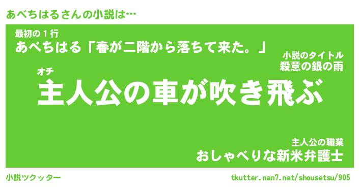 | 男性向けラノベタイトル風あだ名 | 『あべちはるの憂鬱』 |
