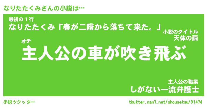 | 男性向けラノベタイトル風あだ名 | 『なりたたくみの憂鬱』 |