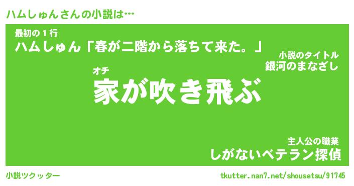 | 男性向けラノベタイトル風あだ名 | 『ハムしゅんの憂鬱』 |