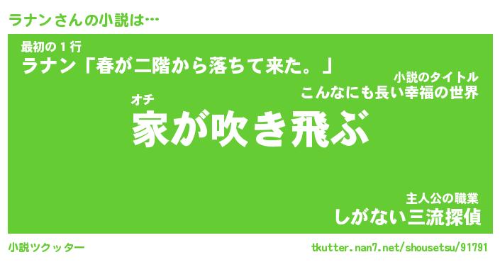 | 胡散臭い通販商品みたいなあだ名 | 『必ず成功するブレスレット…その名も「ラナン」』 |