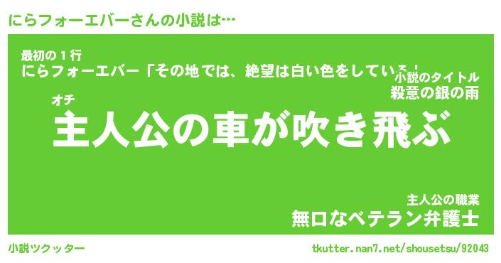 | 魚たちの銀の雨WW …「ケモノ」 | 10月27日 05:47 |