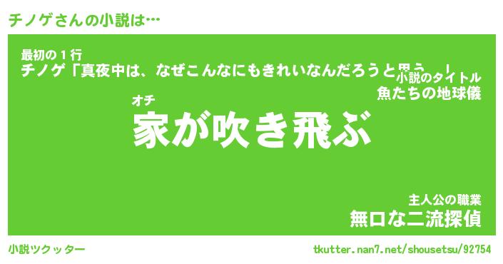 | 男性向けラノベタイトル風あだ名 | 『チノゲの憂鬱』 |