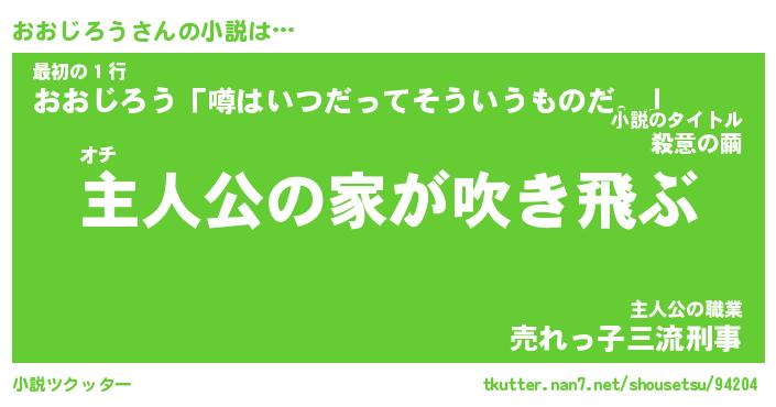 | 男性向けラノベタイトル風あだ名 | 『おおじろうの憂鬱』 |