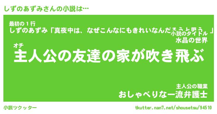 | 男性向けラノベタイトル風あだ名 | 『しずのあずみの憂鬱』 |