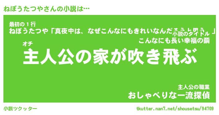 | 女子向けラノベタイトル風あだ名 | 『(仮)ねぼうたつやのやんごとなき事情』 |