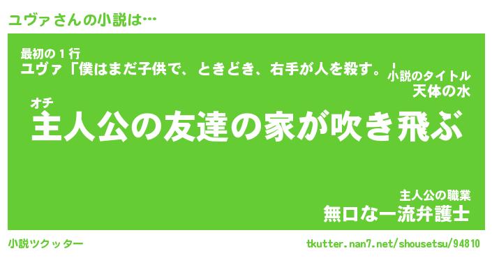 | 男性向けラノベタイトル風あだ名 | 『ユヴァの憂鬱』 |
