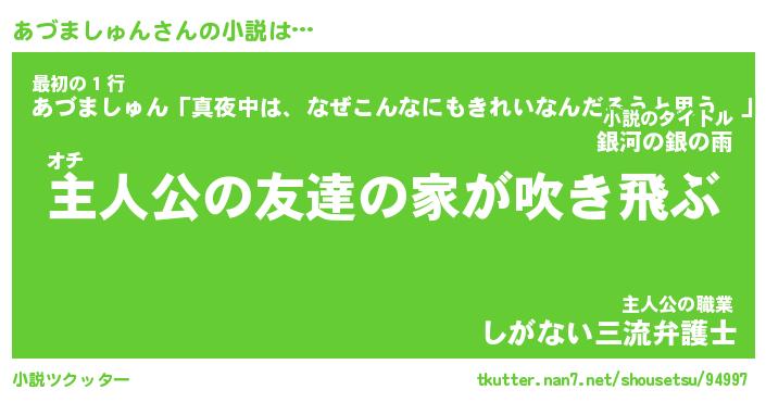 | 男性向けラノベタイトル風あだ名 | 『あづましゅんの憂鬱』 |