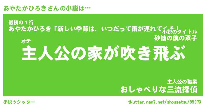| 肩書あだ名 | 『あやたかひろき御曹司』 |