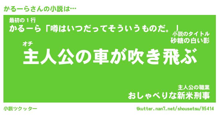 | 男性向けラノベタイトル風あだ名 | 『かるーらの憂鬱』 |