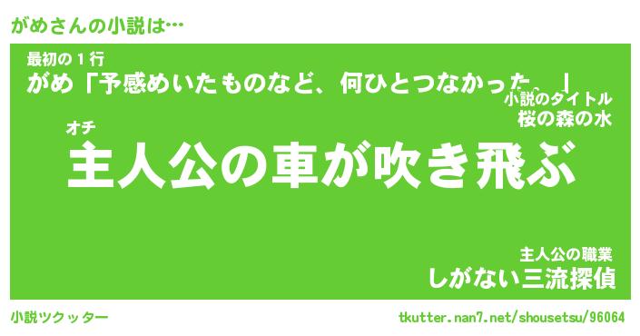 | 男性向けラノベタイトル風あだ名 | 『がめの憂鬱』 |