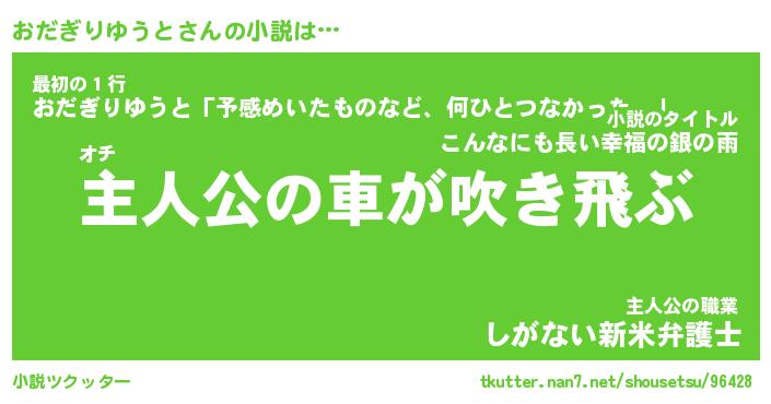 | 男性向けラノベタイトル風あだ名 | 『おだぎりゆうとの憂鬱』 |