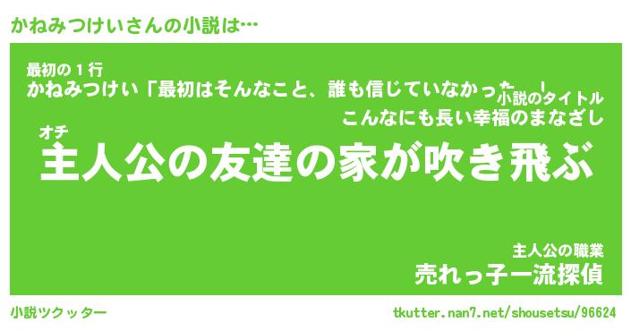| 男性向けラノベタイトル風あだ名 | 『カネミツケイアートオンライン』 |