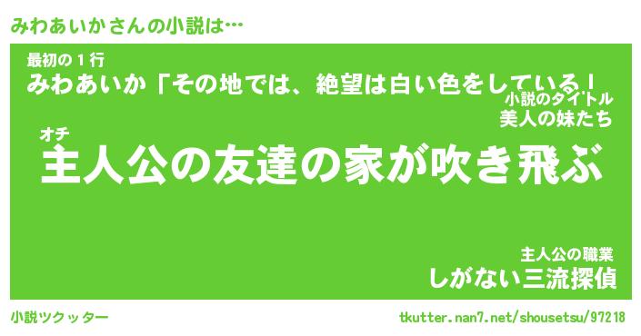 | 男性向けラノベタイトル風あだ名 | 『みわあいかの憂鬱』 |