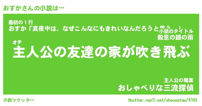 | 魚たちの銀の雨WW …「ケモノ」 | 10月27日 05:47 |