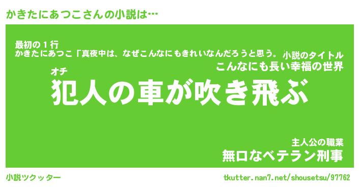 | 男性向けラノベタイトル風あだ名 | 『カキタニアツコアートオンライン』 |