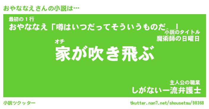 | 胡散臭い通販商品みたいなあだ名 | 『必ず成功する霊験あらたかなお札…その名も「おやななえ」』 |