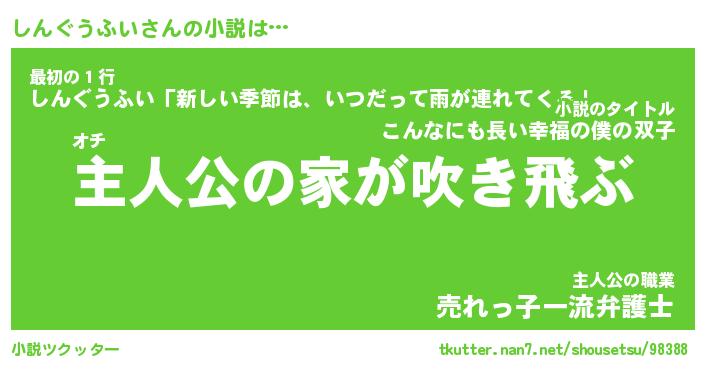 | 男性向けラノベタイトル風あだ名 | 『しんぐうふいの憂鬱』 |