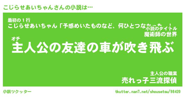 | 男性向けラノベタイトル風あだ名 | 『コジラセアイチャンアートオンライン』 |
