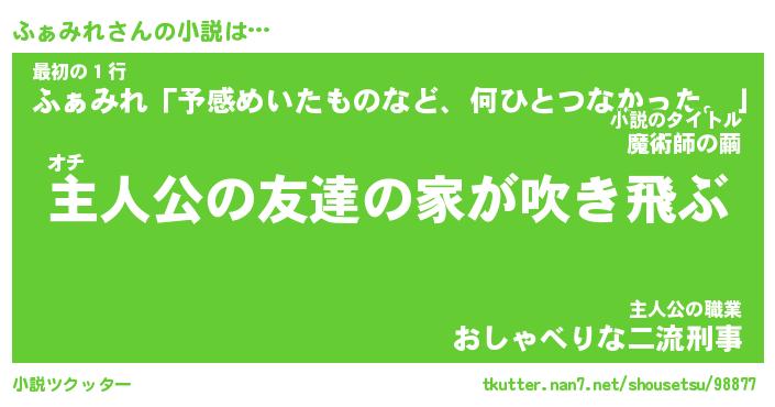 | 男性向けラノベタイトル風あだ名 | 『ふぁみれの憂鬱』 |