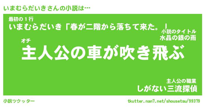 | 男性向けラノベタイトル風あだ名 | 『いまむらだいきの憂鬱』 |
